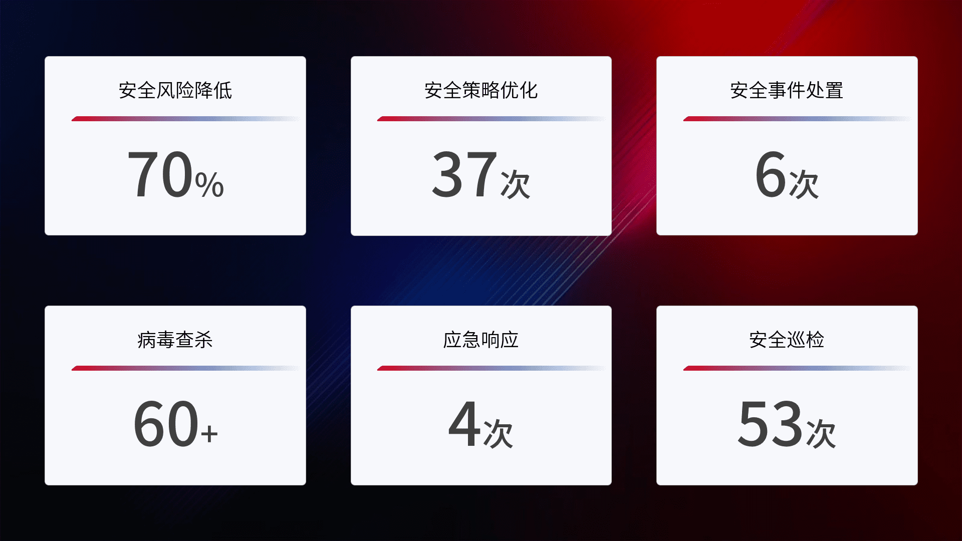 提供全面的安全事件报告体系,,包括处置报告、、、周报、、季度和年度总结,,,结合持续监控,,,帮助客户深入了解网络安全状况。。。。